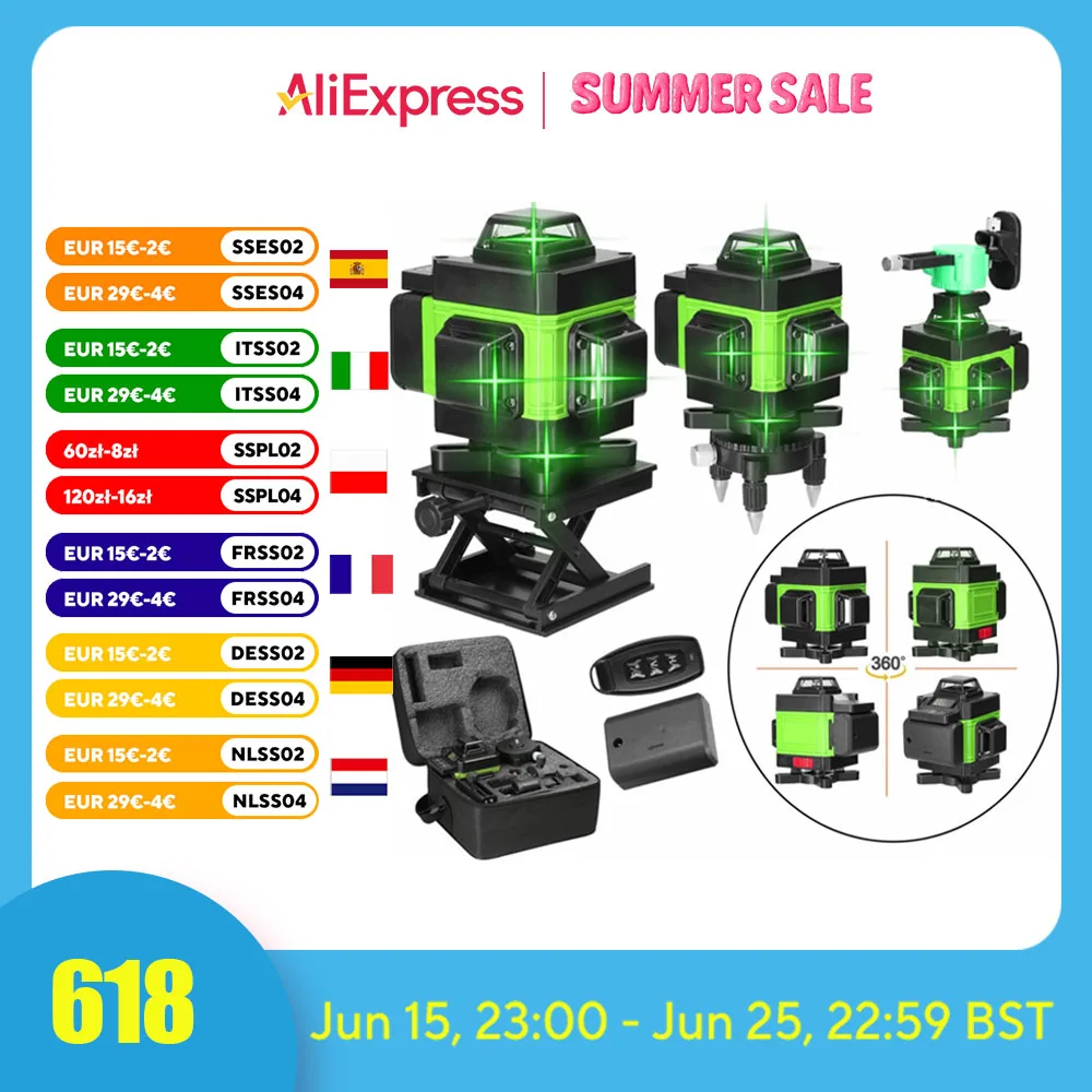 Niveau Laser 4D 16/12 lignes, ligne verte, auto-nivelant 360 horizontal et vertical, niveau Laser Super puissant, niveau laser à faisceau vert