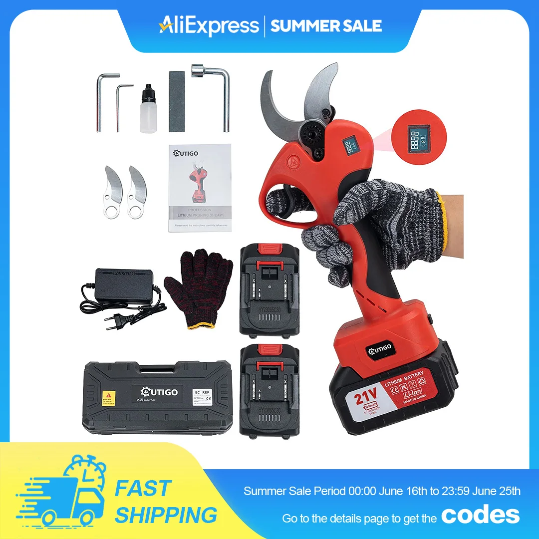 OUTIGO Sécateur Électrique Sans fil, 40mm, avec Écran avec 2 Batteries de 3.0Ah pour les arbres fruitiers et le vignoble
