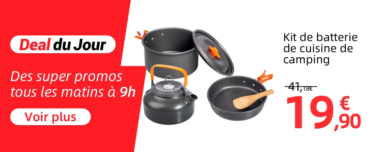 Principaux avantages : 1. Sélection de produits d'extérieur ; 2. Jusqu'à 70 % de réduction avec le code promotionnel ; 3. Livraison gratuite en 3 à 7 jours ouvrés